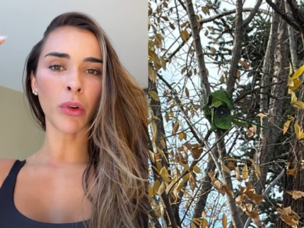 O equipamento estava escondido entre folhas, apontado diretamente para a casa da influenciadora Tainá Militão, que agora busca identificar quem