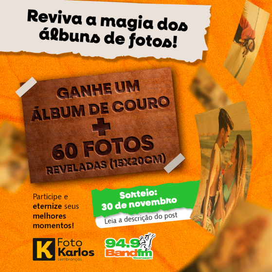 Ganhe um ÁLBUM DE COURO + 60 FOTOS REVELADAS (15x20cm)